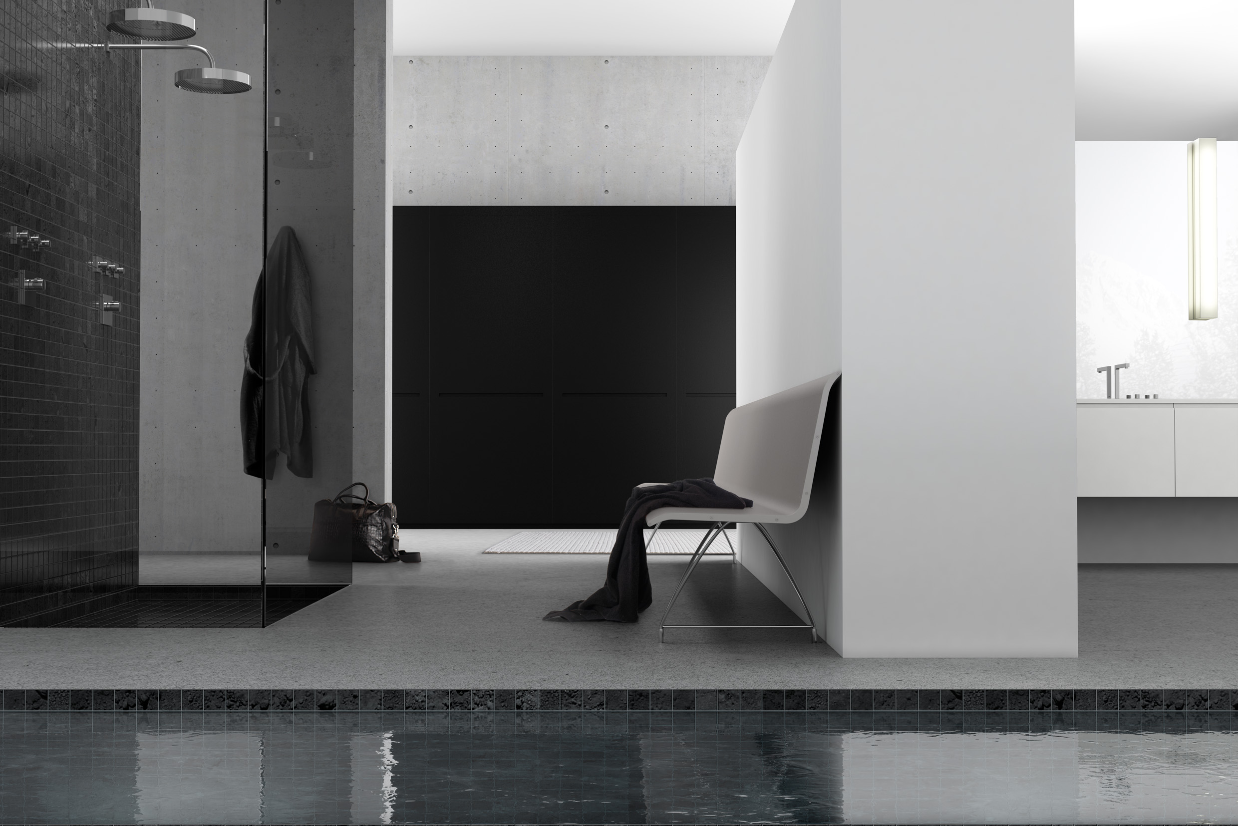 El sistema de apertura con gola blanca, perfectamente integrado en el diseño, elimina la necesidad de tiradores, preservando la estética limpia y contemporánea del conjunto. Cada detalle está pensado para ofrecer una solución funcional, duradera y con una estética coherente con los proyectos de arquitectura más exigentes.