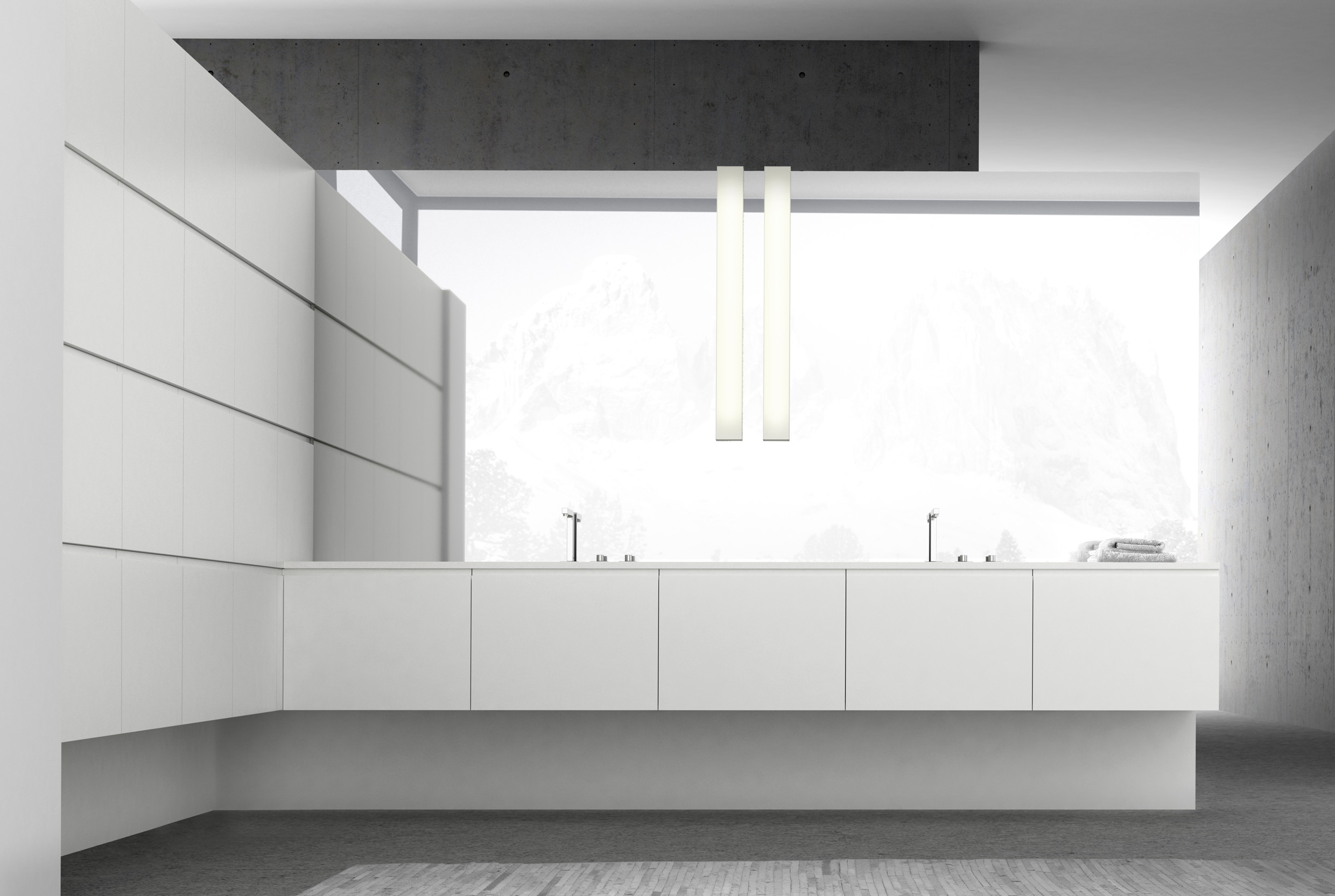 Una composición de módulos suspendidos, lacados en acabado Smooth blanco, que combinan elegancia minimalista con una funcionalidad impecable. La pureza del blanco y la continuidad visual refuerzan la sensación de amplitud, convirtiendo el espacio en un refugio luminoso y ordenado.